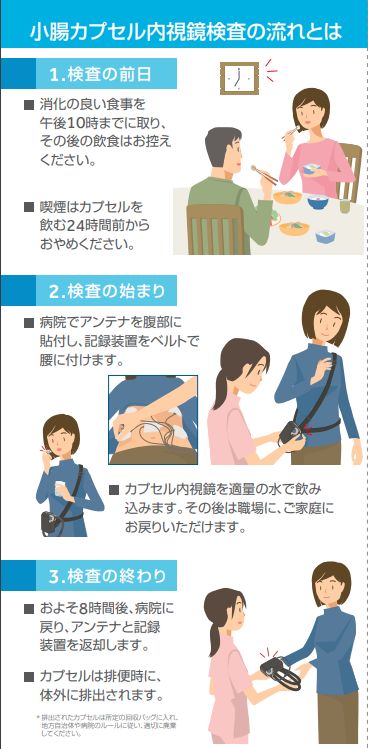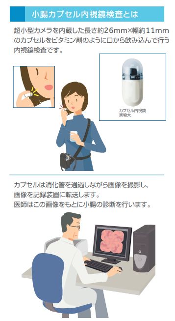 小腸カプセル内視鏡は、自然な状態で病変の直接観察が可能な、患者さんに優しいカプセル型の内視鏡です。
