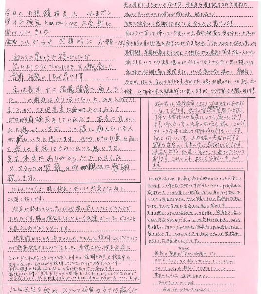 当院では、安心して検査を受けて頂くために、内視鏡検査の全てを、院長自ら行っています。アルバイトの医師に任せるつもりは今後もありません。