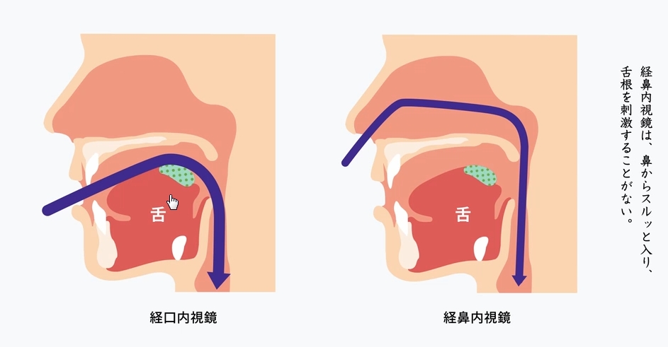 鼻の麻酔が主体のため、のどのしびれが少なく検査後早めに食事ができます。